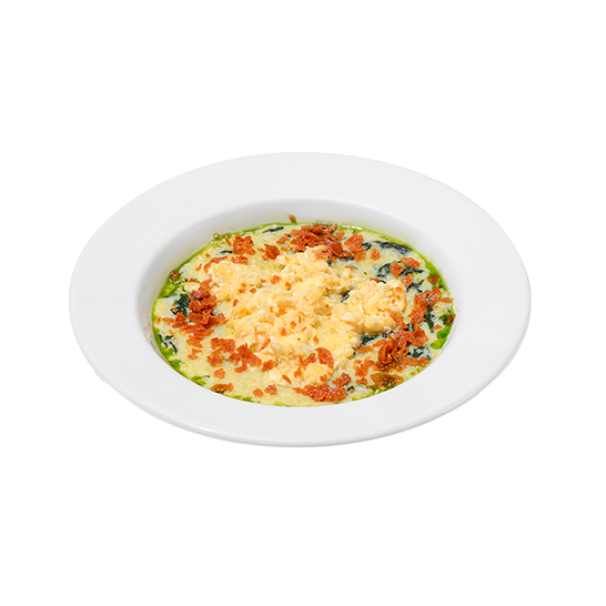 Пшенная каша со шпинатом, омлетом и пепперони