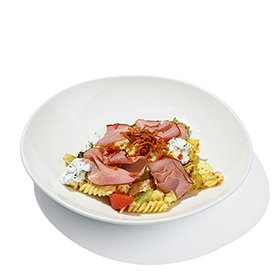 НовинкаСалат с говядиной, пепперони, фузилли и соусом пармиджано