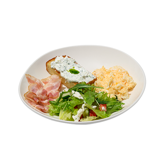 Скрэмбл с беконом и овощами